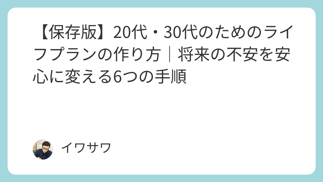 【保存版】20代・30代のためのライフプランの作り方|将来の不安を安心に変える6つの手順